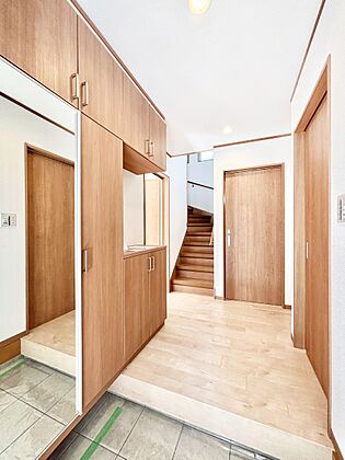 •  天井まである玄関収納で、家族全員の靴もすっきり収納できますね