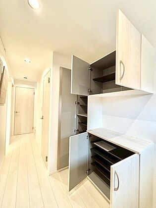 たっぷり収納できるシューズボックスで家族全員の靴も、玄関すっきり。