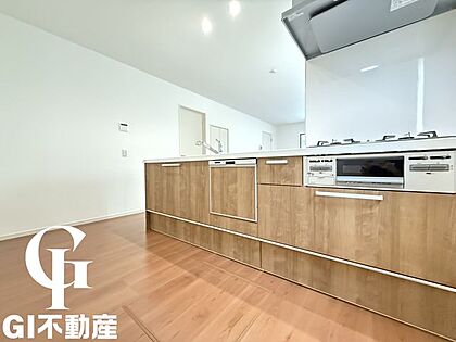 人気の対面式キッチン。キッチンからリビングを一望できるので、ご家族様と会話しながら料理していただけます!