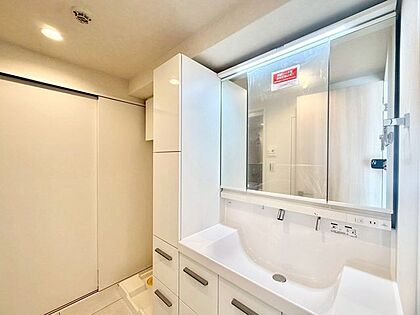 【洗面台】収納たっぷりの洗面台で、朝の支度もスムーズに!