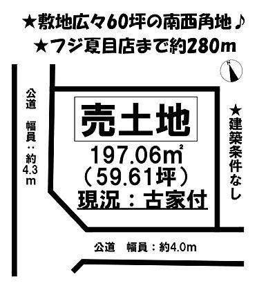 フジ夏目店まで約280m♪日用品の買い物に便利です♪
