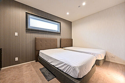 ※販売対象に家具・調度品は含まれません。アクセントクロスが落ち着いた雰囲気の洋室です。洗面室へも出入りができる便利な配置。