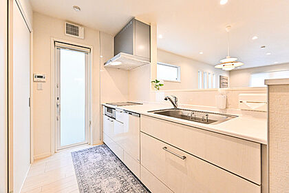 ※販売対象に家具・調度品は含まれません。キッチンの背面には、パントリーとしても使える収納付き。可動式の棚などもございます。