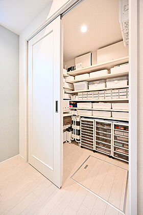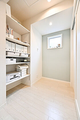 ※販売対象に家具・調度品は含まれません。可動式の棚や床下収納を備えた納戸です。1階にあるため、重いものも収納しやすいです。