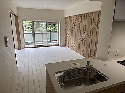 約14帖のLDK。南西向きバルコニーに面し、陽当り良好です。約6.3帖洋室と合わせて広々と使えます。【LDK】