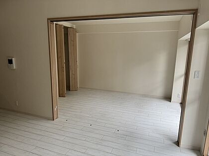 戸の開閉次第でLDKの延長としても、個室としても利用可能。ウォークインクローゼットが備わっています。【南西側約6.3帖洋室】