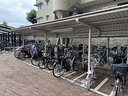 雨から自転車を守る屋根付きの駐輪場が設置されています。自転車を利用でき、行動範囲も広がりそうです。【駐輪場】