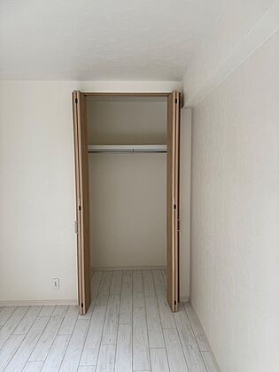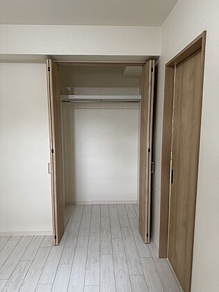 収納はハンガーパイプや棚板が備わり、帽子やバッグなどの小物類も見やすく・取り出しやすく収納できます。【北東側約6.3帖洋室】