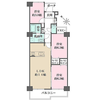 全居室に開口部があり、陽当り良好な南西向き住戸。2カ所のウォークインクローゼットなど収納豊富です。