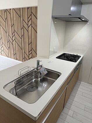 3口仕様のグリル付きガスコンロが備わったシステムキッチン。お料理のバリエーションも増えそうです。【キッチン】