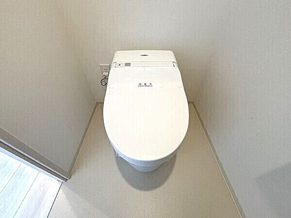 温水洗浄便座付きなので、快適にご使用いただけます。音が伝わりにくい、廊下部分に配置されています。【トイレ】