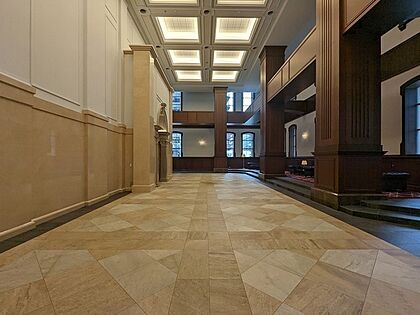伝統美を感じる、洗練された印象の迎賓空間。24時間ゴミ出し可能、暮らしを支えるフロントサービス有り。【ロビー】