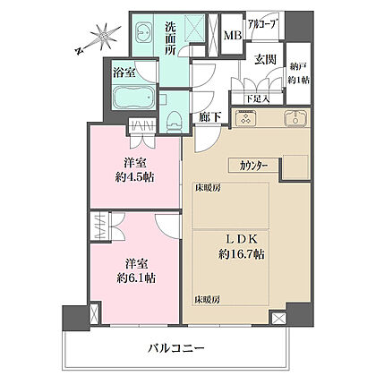 20階部分につき、豊かな眺望を楽しめます。各洋室の収納や約1帖の納戸、下足入等、収納豊富です。