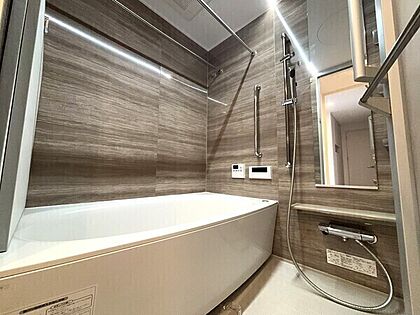 追い焚き機能でいつでも快適なバスタイムを楽しめます。天候を気にせずに洗濯物を乾かせる浴室乾燥機付き。【浴室】