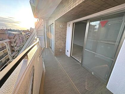 広々としたバルコニーで開放感あふれる空間です。日当たりが良くさまざまな使い方が可能です。引き戸が大きく室内との行き来もスムーズです。近隣の眺望も確保されています。