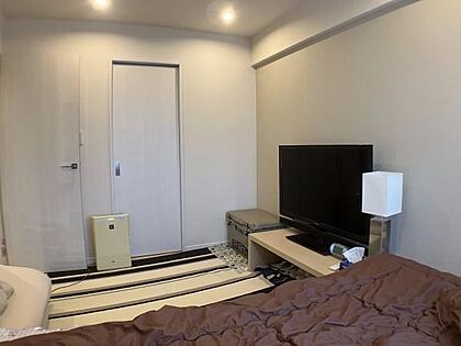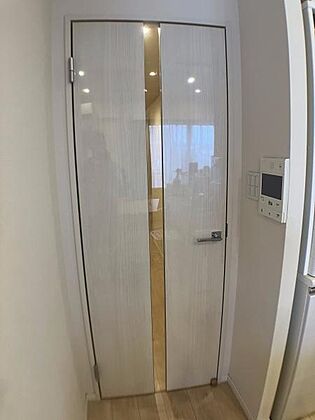 下駄箱の下に間接照明のあるお洒落な玄関です、リノベーション時の写真です