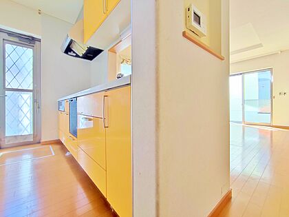 勝手口付きのキッチン。食洗機があり毎日の家事の時短を叶えます。