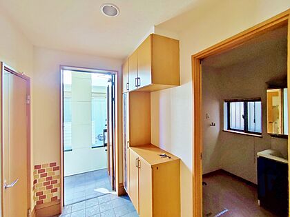 アウトドア用品やゴルフバッグなどの保管に最適な土間収納付き。