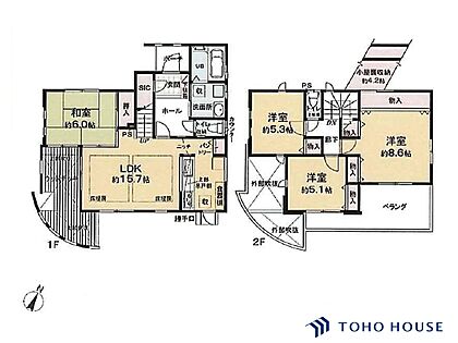 桶川駅徒歩16分の立地。開放感のある角地に面した邸宅。