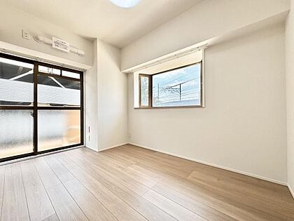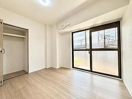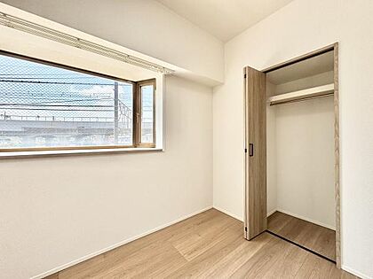 主寝室は5.7帖!採光たっぷり広々としていて明るいお部屋です!クローゼットが設置されています!