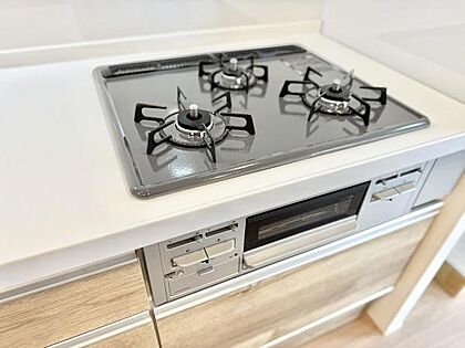 コンロは3口付いているので、おかずを同時に調理できます。お腹を空かせているご家族にいち早くお料理をお届けできます。
