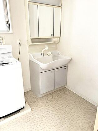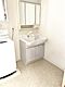 洗面台は清潔感のあるホワイトを基調としたデザインです。収納スペースが豊富で日用品の整理に便利です。明るい空間が毎日の身支度を快適にサポートします。洗濯機を設置できるスペースもございます。