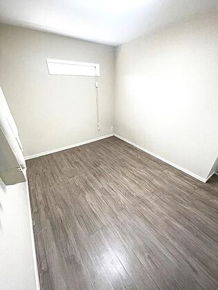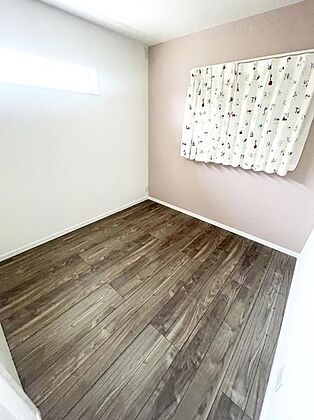 落ち着いた色合いのフローリングが特徴の洋室です。窓から自然光が差し込み明るい印象があります。シンプルな内装でさまざまな家具の配置が楽しめます。