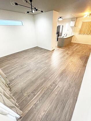 リビングとキッチンがひと続きになっており動線がスムーズです。明るい照明とナチュラルなフローリングが空間を引き立てます。大きな窓から差し込む光が室内をより広く感じさせます。