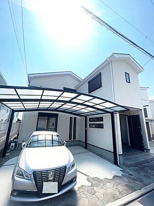2階建ての間取りで広々としたLDKや複数の収納スペースが特徴です。ゆとりのある間取りで各部屋が独立しています。カーポート付きで車を2台駐車可能です。
