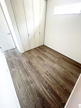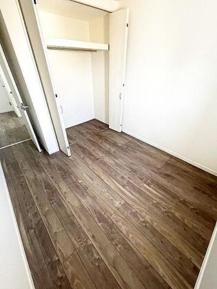 ナチュラルなフローリングが特徴的な洋室です。クローゼット付きで収納もしやすい空間です。ホワイトの壁で明るい印象を感じられます。