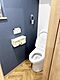 壁のデザインがアクセントのトイレ空間です。温水洗浄便座を採用しています。