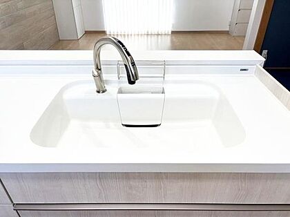 シンプルなデザインのシンクが印象的です。お手入れしやすい形状で清潔感があります。
