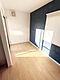 木目調の扉と床が落ち着いた雰囲気を演出しています。収納力のあるシューズクローゼットが設けられており整理整頓がしやすい設計です。全身鏡もあり身だしなみのチェックに便利です。