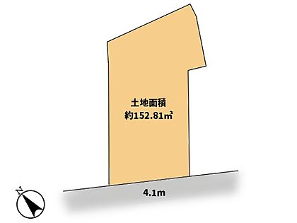 | 土地面積/坪(坪単価) | 152.81m2(登記簿)/46.31坪(75.10万円) | 代表的な接道 | 一方 ※詳細は備考欄をご確認ください |