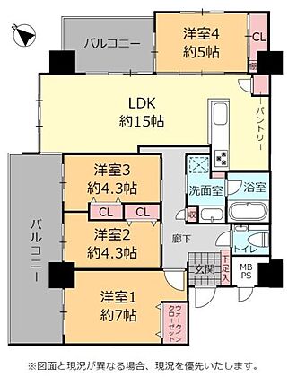洋室4:約5帖。リビング横にあるため、可動式間仕切りをしまえば約20帖のLDKとしても使用できます。