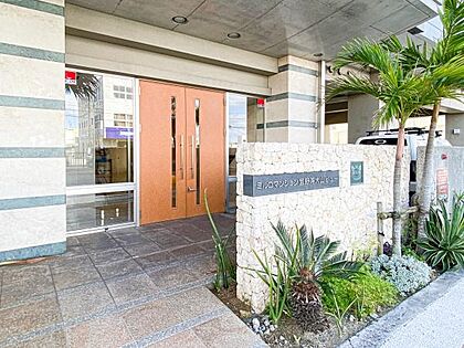 相方積みの石垣と、沖縄らしい植物が迎えてくれるエントランス。