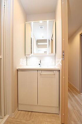 3面鏡のシャンプードレッサーは収納充実!朝のお支度も楽々できますね。