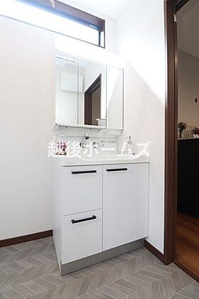 3面鏡のシャンプードレッサーは収納充実!朝のお支度も楽々できますね。