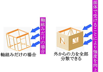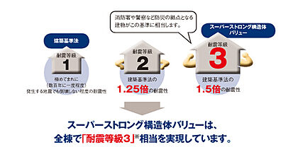 かけがえのない家族と大切な財産を地震から守ります。建築基準法の1.5倍の耐震性(耐震等級3相当)を実現しています。