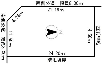 | 備考 | 【接道】 角地 ( 公道 西 8m ) ( 公道 南 8m ) | ||