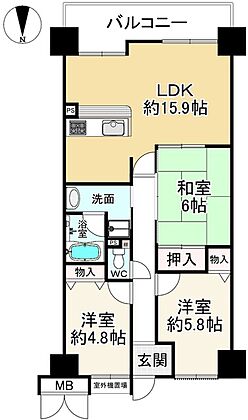 | バルコニー面積 | 9.57m2 | バルコニー向き | 南 |