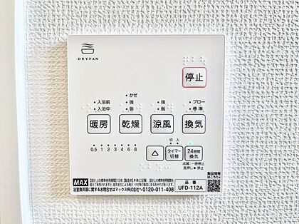 浴室涼風暖房換気乾燥機付きなので、お天気が悪い日のお洗濯も安心!