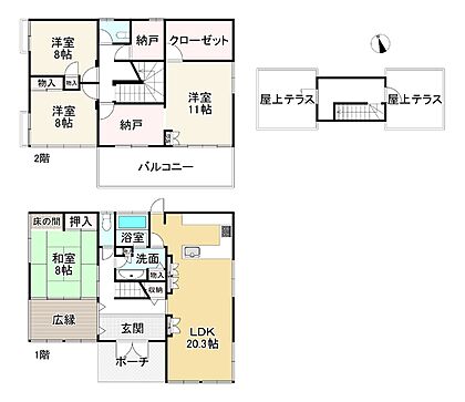 | 間取り | 4SLDK | 構造及び階数 | 軽量鉄骨 2階建て |
