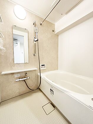 一日の疲れを癒してくれる明るい清潔感のあるバスルーム