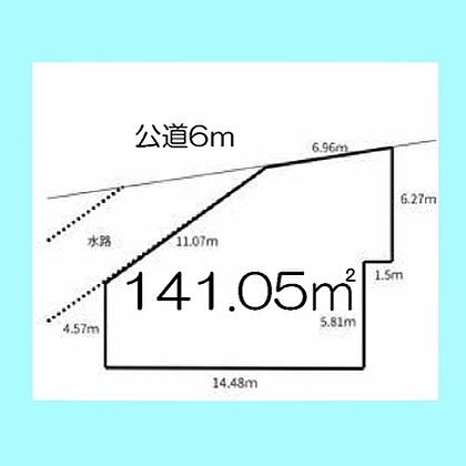 | 土地面積/坪(坪単価) | 141.05m2(実測)/42.74坪(81.40万円) | 代表的な接道 | 一方 公道 北西 6m ※詳細は備考欄をご確認ください |
