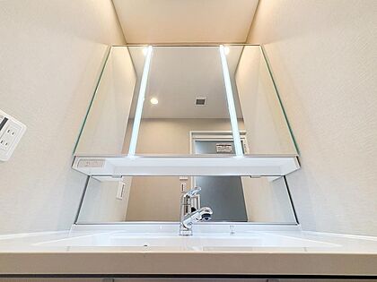 シンプルでありながらモダンなデザインが魅力の洗面化粧台。ゆったりとしたスペースと収納力があり、毎朝の準備がスムーズに。使いやすさが際立ち、生活を快適にしてくれます。