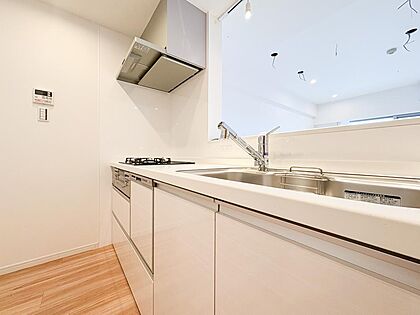 対面式のシステムキッチンで、リビングを見渡しながら料理ができる開放感。広いカウンターと豊富な収納スペースが、調理をよりスムーズに。居心地の良い空間で、料理をしながらコミュニケーションが生まれます。