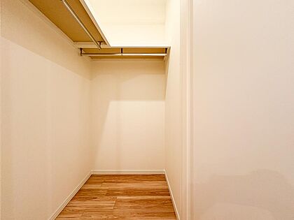 広さが魅力のウォークインクローゼットは、衣類や小物をたっぷりと収納できるスペースです。洋服を見渡しやすく、整理整頓がしやすい設計で、使い勝手の良さが日々の生活をサポートしてくれます。