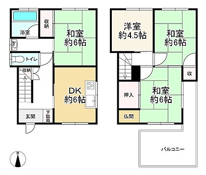 | 間取り | 4DK | 構造及び階数 | 木造 2階建て(連棟式) |
