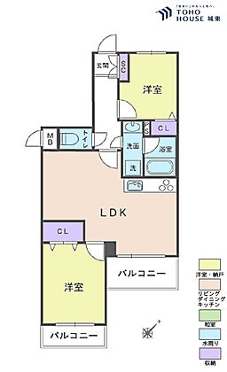 2LDK、専有面積50.17平米、バルコニー面積6.63平米